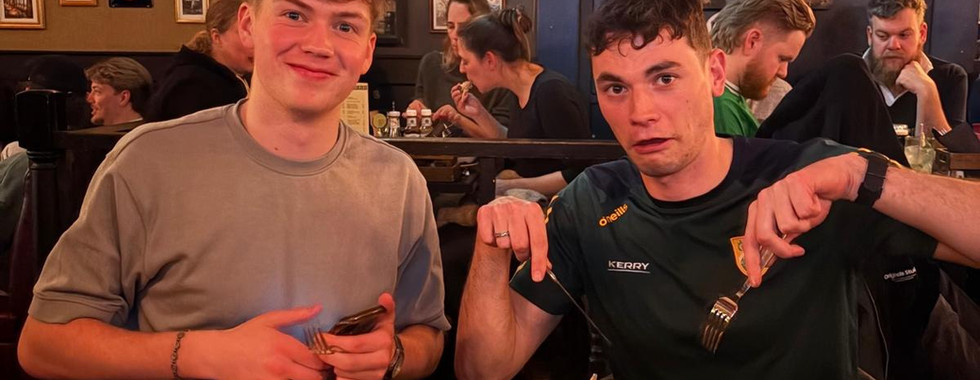 Back to the less serious part of this blog post. Since St. Patrick's Day was on a Tuesday, we celebrated it twice. First, we gathered at Tierney's on the Saturday before, for all the poor souls who had to work on St. Patrick’s Day or, worse, the day after. Together we watched the Six Nations rugby game, Ireland against Scotland, and the Kerry–Mayo Gaelic football match, whilst enjoying a good Irish breakfast. Tierney's baked beans passed the Irish taste test with a 10/10. As these days usually go, we also had dinner at Tierney's and a few more pints in the evening. Overall, a successful day with great craic, good pints, Ice Tea greens, and successful sports results.